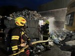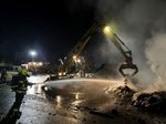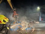 Ein Mitarbeiter des Betriebes sah am Morgen Rauch aus einem Gewerbemüllhaufen aufsteigen. Beim auseinanderräumen mit einem Bagger zündete der Müll dann durch.