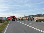 Zur Technischen Hilfeleistung wurden wir am 09.November 2023 um 08.08 Uhr von der Landeswarnzentrale auf der Bundesstraße 1 Höhe Gewerbepark West gerufen. Der Einsatztext „Asphaltmulde liegt auf der Seite“ ließ bereits etwas mehr Arbeit vermuten. Am Einsatzort eingetroffen stellten wir fest das neben dem LKW auch ein PKW beteiligt war. Die Lenkerin bzw. der LKW – Lenker wurden vom Roten Kreuz versorgt.