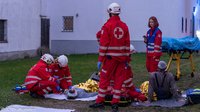 Drei "Verletzte", die sich nach einer angenommenen Verpuffung im Ballenlager erhebliche Verletzungen zugezogen hatten, mussten von den eingesetzten Atemschutztrupps gerettet werden. Dies bot den Einsatzkräften die Möglichkeit, ihre Fähigkeiten in der Personensuche und Personenrettung unter Beweis zu stellen.