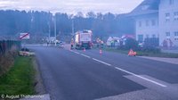 Am Freitag, 21. Oktober 2022, wurden wir kurz vor Beginn der Großübung zu einem Verkehrsunfall gerufen. Im Kreuzungsbereich B1 / Gewerbepark Mitte, stießen zwei Fahrzeuge zusammen. Dadurch, dass die Unfallstelle direkt neben dem späteren Übungsobjekt war, waren Polizei und Ersthelfer innerhalb weniger Sekunden an der Unfallstelle. Wir hatten ebenfalls nur einen kurzen Anfahrtsweg und konnten somit sehr rasch helfen.