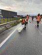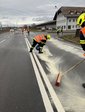 Vorort stellte sich heraus, dass es sich um einen Verkehrsunfall mit Ölspur handelte. Ein Auto war von der Straße abgekommen, touchierte einige Verkehrszeichen und blieb anschließend am Straßenrand stehen. Durch den Aufprall wurde das Auto beschädigt und die Betriebsflüssigkeiten verteilten sich auf der Fahrbahn. Wir sicherten die Unfallstelle ab. Entfernten das Auto von der B1 und stellten es für den Abschleppdienst auf einem nahen Parkplatz ab. Weiters wurden diverse Autoteile aufgesammelt und eine ca. 300 Meter lange Ölspur gebunden.