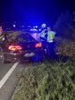 Ein Fahrzeug war mit stark überhöhter Geschwindigkeit von der Fahrbahn abgekommen und im dichten Gebüsch zwischen Bundesstraße und Eisenbahnstrecke zum Stillstand gekommen.
